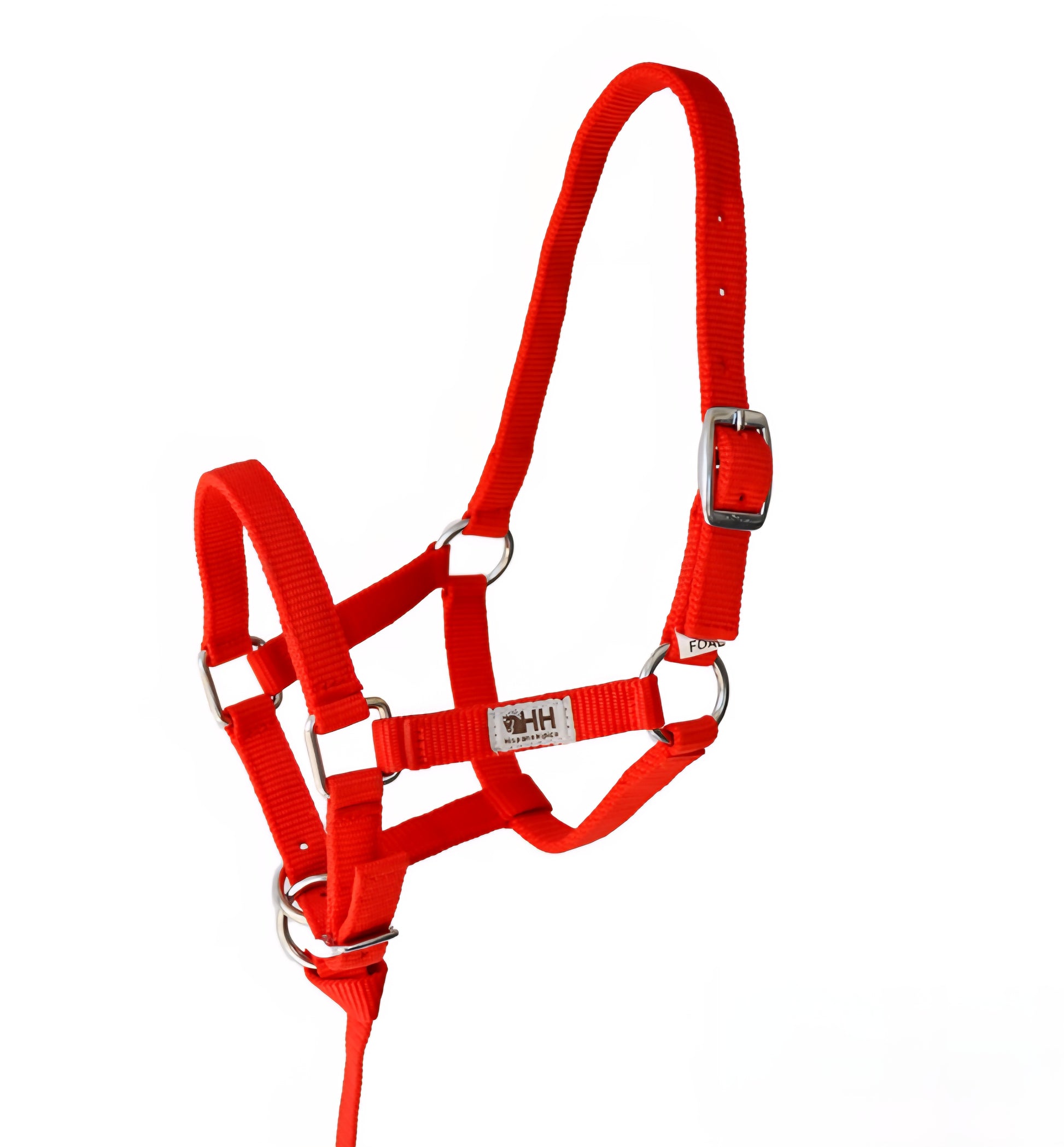 Cabezada de cuadra para potros recién nacidos. Realizada en nylon resistente y con una pequeña tira o ramal.